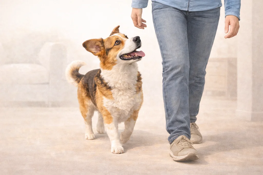 Vous vous levez pour aller chercher un verre d’eau… et votre chien se lève aussi. Vous changez de pièce...
